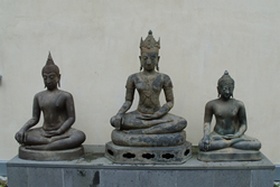 Der heutige Kleinstaat Kambodscha ist Nachfolger des einst mächtigen Khmer-Reiches, das vom 9. bis zum 13. Jahrhundert große Teile Südostasiens beherrschte. Auf der Höhe ihrer Macht beherrschten die Khmer ein Gebiet, das das heutige Kambodscha und große Teile Thailands umfasste. Aus Indien hatten die Könige dieses Reiches vor allem die Kulte der Götter Schiva und Vishnu übernommen, aber auch der Mahayana-Buddhismus war nicht unbekannt. Einige Könige folgten einer Linie des Mahayana-Buddhismus, der hinduistisch beeinflusst war (Tantrayana). Unter den großartigen Tempelbauten dieser Kultur, deren königliche Monumente und Kunstwerke zu den größten der buddhistischen Welt gehören, sind Phra Viharan, Angkor Wat und der Bayon die berühmtesten. Sanskrit war die Sprache der Religion und des Beamtentums. Der Theravada-Buddhismus scheint bei den Khmer später als anderswo in Südostasien angekommen zu sein: Die früheste Theravada-Inschrift wird auf ca. 1230 datiert. Im Verlauf des 13. Jahrhunderts begann der Niedergang des Khmer-Reiches, das vor allem an die aus dem Norden eindringenden Thai-Völker große Gebiete verlor. Der genau Zeitpunkt der Einführung des Theravada-Buddhismus ist nicht bekannt, auch über die Ausbreitung des Theravada wissen wir wenig, aber nachdem er einmal eingeführt war, scheint er im Volk viele Anhänger gefunden zu haben. Der erste Herrscher, der sich dem Theravada näherte, war Jayavarman Paramesvara. Er bestieg 1321 den Thron, nahm die neue Lehre an und seither wurde Sanskrit durch Pali als Sprache religiöser Rituale und heiliger Texte ersetzt. Man darf vermuten, dass thailändische Mönche die Wegbereiter des Theravada in Kambodscha waren. Auch später bestanden zwischen den Buddhisten beider Länder enge Beziehungen. Nach einer Überlieferung sollen kambodschanische Mönche sich 1422 nach Ceylon begeben haben und 1425 neu ordiniert nach Kambodscha zurückgekehrt sein. König Ponhéa Yat (reg. 1432-1467) gab Angkor endgültig auf und verlegte die Hauptstadt nach Phnom Penh. An die Stelle des Hinduismus und des Mahayana, die in Angkor einen so glanzvollen künstlerischen Ausdruck gefunden haben, ist also der Theravada getreten, der seinem Ritus und seiner Kunst nach nüchterner und schmuckloser und somit gleichsam dem einfacheren Lebenstil des heutigen Kambodscha angemessener ist. Wie ein spanischer Dominikaner Ende des 16. Jahrhunderts berichtete, blühte der Theravada-Buddhismus im Lande; er schätzte, dass allein in Phnom Penh etwa 15000 Mönche lebten. Die Frömmigkeit des Hofes, so der Bericht, beziehe sich in der Regel allerdings auf den Wunsch nach guter Wiedergeburt. In der Folgezeit ging es hin und her. Aufgrund der äußeren Bedrohung durch die Thai suchten einige Herrscher Beistand bei nichtbuddhistischen Mächten, etwa Ende des 16. Jahrhunderts den der Spanier auf den Philippinen, die sich Hoffnung auf eine Bekehrung der Khmer zum Katholizismus machten. Im 17. Jahrhundert konvertierte König Temaea Thippadey unter dem Namen Ibrahim zum Islam, um die Hilfe muslimischer Malaien zu erhalten, er wurde jedoch später von den Vietnamesen gestürzt. Der Einfluss Thailands wirkte sich dann 1849 durch die Einführung neuer Reformen im Sangha aus. Während der französischen Herrschaft (1863-1953) war die Gesellschaft Kambodschas nicht so stark wie die Nachbarländer von den Umwälzungen der Industrialisierung und des Kapitalismus betroffen und blieb auch vom Strudel der Weltpolitik bis zum Jahre 1970 weitgehend unberührt. In dieser Zeit galt Kambodscha als das buddhistische Land, in dem die Ordensregeln am strengsten befolgt wurden. Hier war es für einen Mönch immer noch ein Vergehen, privat Geld zu besitzen. Hatte ein Mönch geschlechtliche Beziehungen zu einer Frau, galt das ganze Kloster als entweiht und wurde verlassen, was dazu führte, dass auch die benachbarten Dörfer aufgegeben wurden. Wie in Thailand wollte auch in Kambodscha der modernistische Buddhismus nach dem ersten Weltkrieg das religiöse Leben von nicht-kanonischen Elementen reinigen. Mit der Regierung von Prinz Sihanuk (der zunächst von 1941-1955 herrschte), begann der Widerstand gegen das französische Kolonialregime, an dem sich Mönche in führender Position beteiligten. Von 1955-1960 übernahm sein Vater das Amt des Königs. Von 1960-1970 hatte wieder Prinz Sihanuk dieses Amt inne. An religiösen Angelegenheiten war er stark interessiert; so stiftete er den Löwenanteil für den Bau des nach ihm benannten und 1964 fertiggestellten Klosters Wat Preah Sihanuk. Die Oberhäupter der beiden buddhistischen Nikayas waren Mitglieder des Kronrats, doch durften sich die Mönche sonst nicht in politische Angelegenheiten einmischen und hatten auch kein Wahlrecht. Nach der Unabhängigkeit verschlechterten sich Kambodschas Beziehungen zu Vietnam. Gleichzeitig hatten die Kommunisten, die sogenannten "Roten Khmer" ein radikales Konzept auf ihre Fahnen geschrieben, wurden aber in den Untergrund gedrängt. 1970 wurde die Regierung von Prinz Sihanuk durch rechte Politiker und Militärs gestürzt. Damit begann eines der schrecklichsten Kapitel in der Geschichte Kambodschas, das von einem beispiellosen Morden der rechten Militärs unter Lon Nol, der die Macht übernommen hatte, an der vietnamesischen Minderheit des Landes eröffnet und dann von dem Genozid der Roten Khmer auf grauenhafte Art noch überboten wurde. Das Regime der Roten Khmer wollte die gesamte Khmer - Gesellschaft verändern und verdächtigte schon jeden, der lesen und schreiben konnte, ein Klassenfeind zu sein. Die buddhistische Religion sollte ausgerottet werden: Klöster wurden zerstört, Mönche wie auch andere Gebildete wurden ermordet. Insgesamt sollen dem Terror der Roten Khmer nach vorsichtigen Schätzungen über eine Million Menschen zum Opfer gefallen sein. Die Vietnamesen stürzten 1979 das Regime und setzten eine kommunistische Regierung ein. Diese begann mit dem allmählichen Wiederaufbau des Landes und toleriert
